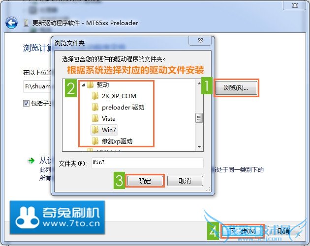 4.在对话框中选择 “浏览计算机以查找驱动程序” 如下图所示选择相应“驱动”的目录