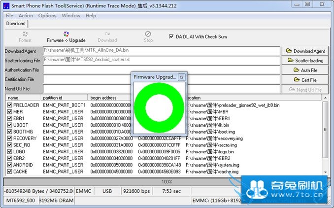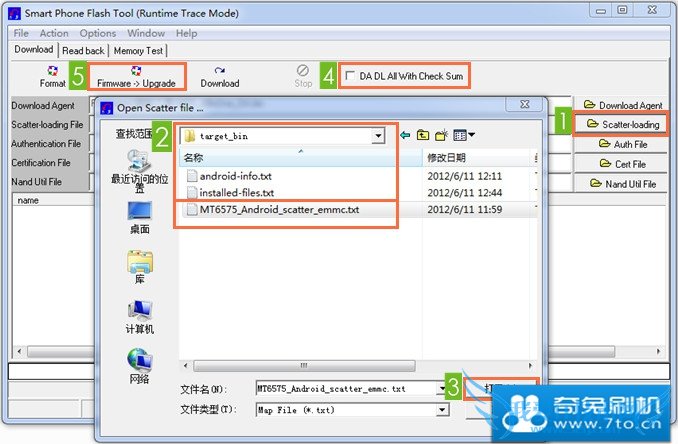 2.选择 固件 文件夹下的相关文件,勾选 DA DL All With Check Sum,点击"Firmware -> Upgrade"