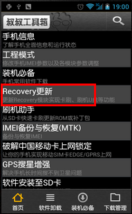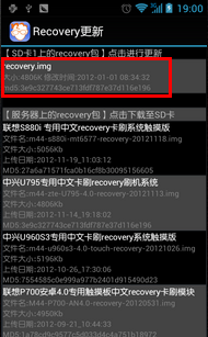 6.如果您已经将recovery.img复制到了SD卡卡上,并且将TF卡放到了手机上,那么,此时软件列表最上面应该会显示“SD卡上的recovery包”“点击进行更新”的字样。