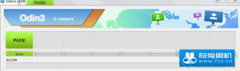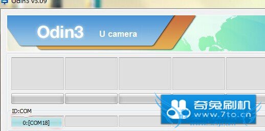 6.打开odin软件之后软件会自动识别你的手机,识别成功后会在ID:COM处显示蓝色的(表示手机连接成功了,如果没有显示蓝色的,换个usb口试试,或者看下驱动有没有安装好),然后勾选PDA(新版本的是AP)选择上面下载的tar格式的文件包
