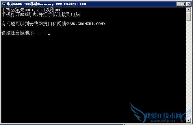 4、按任意键即可刷入华为G606-T00移动版第三方Recovery。