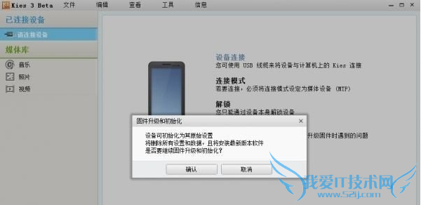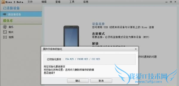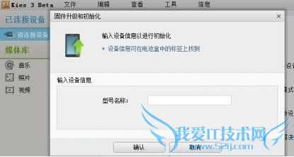 1、打开Kies3,选择“工具——固件升级和初始化”。 输入手机型号(如SM-N900K),然后点击确认按钮。