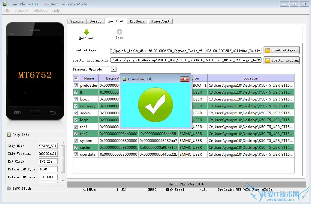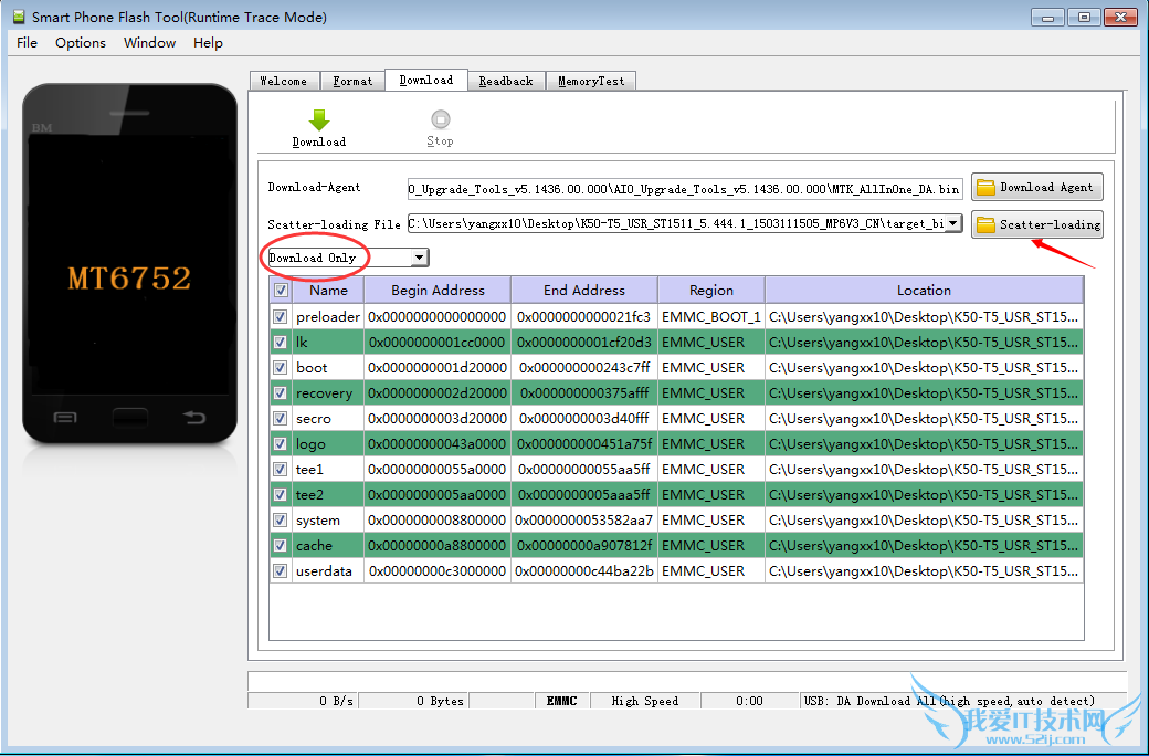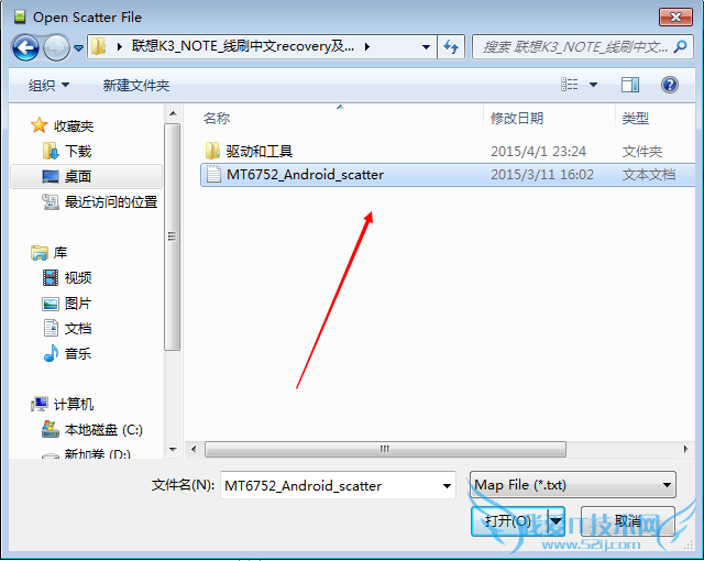 4.选择之前解压出的线刷包中的MT6752_Android_scatter.txt文件,如下图