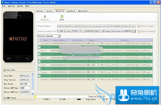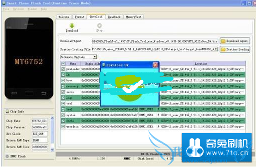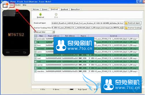 3.在弹出的选择框中选择文件 “MT6752_Android_scatter.txt” (这个文件路径在解压后的target_bin中),然后等待 image镜像载入,如下: