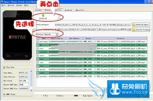5.紧接着工具界面中先选择 “Firmware-Upgrade” ,然后点击“Download”按钮,如弹出提示,请点击确定,如下图: