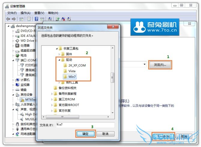 4.在对话框中选择 “浏览计算机以查找驱动程序” 如下图所示选择相应“驱动”的目录,出现红色的驱动安装确认框,请选择“始终安装此设备驱动程序”。