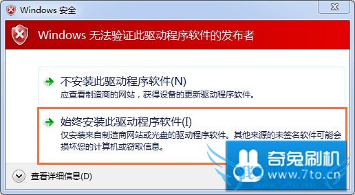 出现红色的驱动安装确认框,请选择“始终安装此设备驱动程序”。