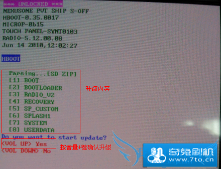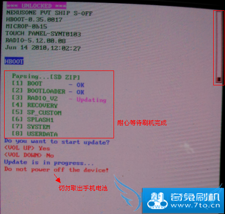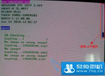 (如果无加载界面,说明手机不在hboot模式或者手机是“木马机”;木马机可软解后卡刷,谨慎操作,具有一定风险)