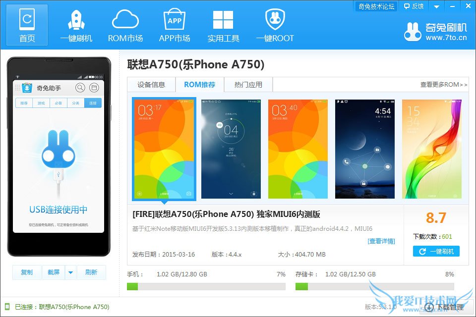 至此一键刷机教程就结束了,机友想体验更多的联想A750 (乐Phone A750)刷机ROM包,点击进入奇兔刷机ROM市场即可下载,希望这篇联想A750 (乐Phone A750)刷机教程对大家有所帮助。