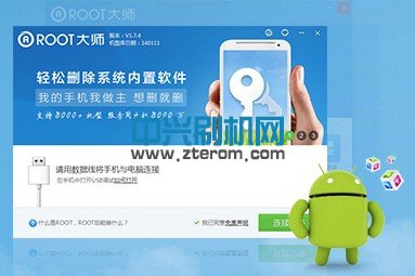 中兴ROOT大师 最好用的ROOT工具软件。一键ROOT大师在支持机型最多、成功率最高的一键ROOT工具 全面支持 集成多款ROOT引擎,多平台支持,不断钻研新技术ROOT更多机型 系统管理 自带授权管理,强力卸载内置垃圾软件,一键优化管理您的手机 贴心服务 主题美化、海量ROM、应用游戏、一键刷机,让您成为手机真正的主人