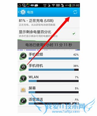 2,在设置功能里面有一个【电池】选项,点击打开,然后点击右上角的一个回旋标志,然后点击一下就会刷新你当前最新的电量了