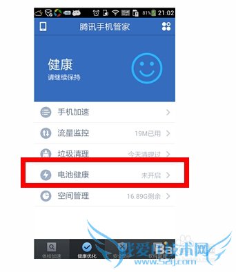 1,还有我们可以借助智能手机的特点,拓展一个给力的第三方软件,比如说腾讯手机管家——健康优化——电池健康功能
