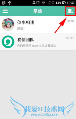 1)下载安装并打开新版的“易信”,登录后点击主界面右上角的头像符号。(相关教程:易信怎么下载?)