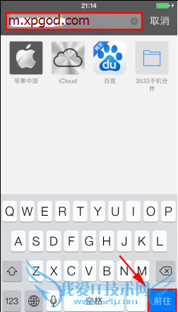 2)在浏览器上方的输入框输入地址“m.xpgod.com”,进入手机天堂触屏版。