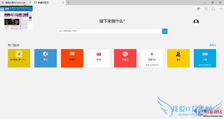 Win10 Th2的Edge浏览器增加了标签页预览功能,只要鼠标移动到相应标签页,就会弹出对应页面的略缩预览窗口。在多标签页的情况下,让用户不必切换就能查看任意页面的大致内容。