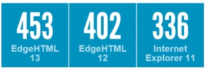 在HTML5测试方面,新引擎Edge浏览器获得了有史以来的最高成绩458分,超过Win10正式版10240足足56分,让IE11的336分更难以望其项背。