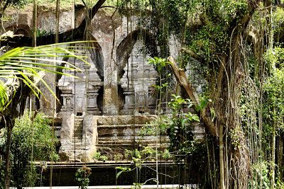 首次踏足巴厘岛,来到这座幽谷中的千年古庙,竟有似曾相识的感觉。荒山野岭,古木苍苍,山涧溪流,足以栖身的山洞,荒秃的石壁,和石壁上雕朔出的庄严神像,我活生生的行走于这片土地上。
