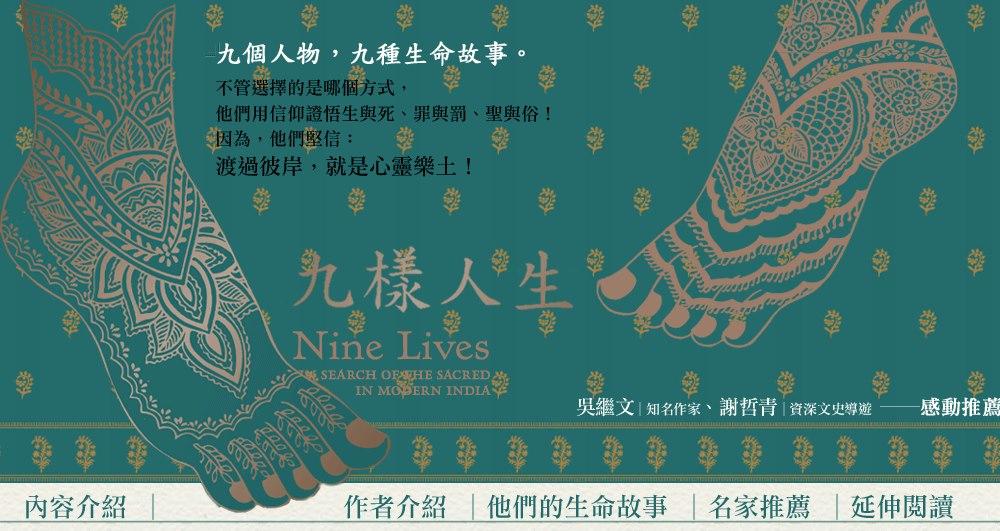 《九样人生》书写九个印度人的生活,第一个就是耆那教的女尼。由于该宗教是严格禁欲的宗教,严格到最后,连东西也不吃,让自然慢慢死去,书中受访的女尼,就进入这阶段了。不是十天半月,死亡的过程可以很缓慢、很长。其实她是寻死,而是要放弃一切的羁绊:欲望、世界,以至到了最后,自然的身体。