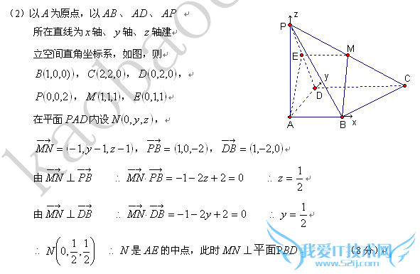 [数学]如图所示,四棱锥P-ABCD中,AB垂直AD,CD垂直AD,PA垂直底面ABCD如图所示,四棱锥P-ABCD中,AB⊥AD,CD⊥AD,PA⊥底面ABCD,PA=AD=CD=2AB=2,M为PC中点,在侧面PAD内找一点N,使MN⊥平面PBD