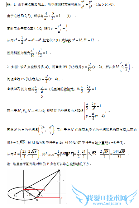 [数学]圆锥曲线的题已知以坐标原点为中心,焦点在X轴上的椭圆E经过E(2,3),且离心率为1/2.1.求椭圆方程.2.设椭圆的左右焦点分别为F1,F2,右顶点为A,点P是直线X=8上一点(点P不在x轴上).若PF1与y轴交