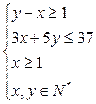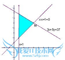 设东西两校参加活动的人数分别为 ,受到服务的小学生的人数为 ……1分则 应满足的约束条件是 ……5分作出可行域如图 ……9分 解 得: ……11分答:东西两校参与活动的同学人数分别为4,5时,受到服务的小学生最多,是35人。 ……12分 |