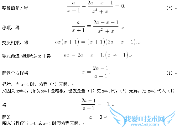 去分母,同乘x(x+1) ax-(2a-x-1)=0 (a+1)x=2a-1