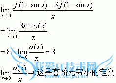 高数求导问题我想知道lim(f(1+sinx)-3f(1-sinx))x=8...