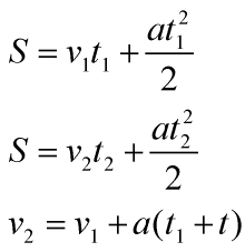 第一个方程是有未知初速度的第一个电门的路程方程 第二个同理 这个题难点估计就是初速度不知道是多少 所以就用第三个方程来算一下初速度 刚进第二个门的时候的初速度V2跟刚进第一个门的初速度V1时间上相差了通过第一个光电门的时间+中间的时间 联立方程 v2和a的二元方程组 就完事了