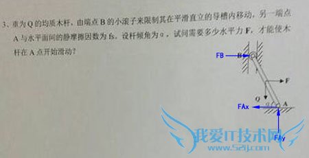 答:当 F > (2fs -ctana) Q , 杆在A点开始滑动.