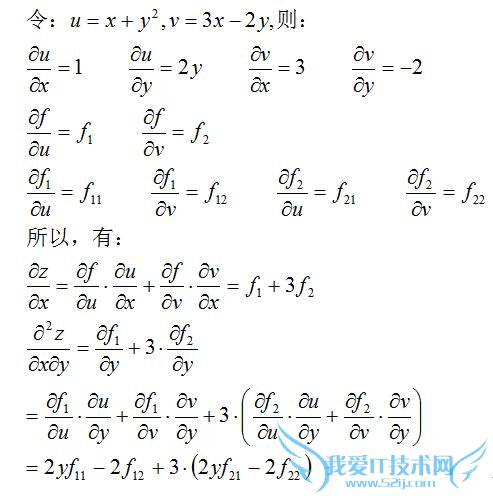 问题4:二阶偏导数求法设z=f(x+y2,3x-2y),f具有二阶连续偏导数,求az/ax,a2z/axayaz/ax=f1+3f2a2z/axay=(f11*2y-2f12)+3(f21.2y-2f22)如果f1是z对第一个中间变量u的偏导数az/au*au/ax,那么f11是什么形式?a2z/axay的求法[数学科目]