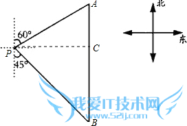问题5:一艘轮船位于灯塔p的北偏东60°方向上的A处,它沿正南方向航行80海里后,到达位于灯塔P的南偏东45°方向上B处,这时,海轮所在B处距离灯塔P有多远[数学科目]