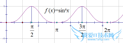 (sinx)^4=[(sinx)^2]^2=[(1-cos2x)/2]^2=(1-cos2x)^2/4=[1-2cos2x+(cos2x)^2]/4=[1-2cos2x+(1+cos4x)/2]/4,(sinx)^4的周期是cos2x的周期(等于π)和cos4x的周期(等于π/2)的最小公倍数,故(sinx)^4的周期是π