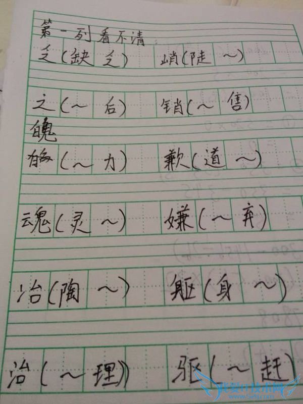 磨( 难 ) 泽( 沼泽 ) 诀( 口诀 ) 慰( 安慰 ) 虚( 假 )