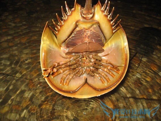 鲎,亦称马蹄蟹。肢口纲(Merostomata)剑尾目(Xiphosura)海生节肢动物,共4种,见于亚洲和北美东海岸。虽又称马蹄蟹,但不是蟹,而与蝎、蜘蛛以及已绝灭的三叶虫有亲缘关系,鲎起源甚早,被称为活化石。