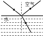 问题3:一条光线照射到水面发生反射和折射,这条光线经水面折射后的光线如图所示.请在图中画出它的入射光线和反射光线的大致方向.[物理科目]