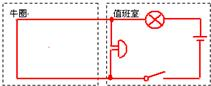 让电灯与电铃串联,且导线并联在电铃的两端,当牛在圈内吃草时,值班室内灯亮而铃不响,当牛碰断围住的细导线到圈外时,电铃便会响起来.电路图如图所示: