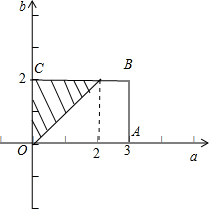 如图,试验的所有基本事件所构成的区域为矩形OABC:{(a,b)|0≤a≤3,0≤b≤2},