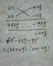 如:6x^2-5xy-6y^2 (有些过程很难打在上面,我就发图片咯)