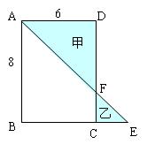 问题4:长方形ABCD中,AB=8cm,BC=6cm,延长BC到E,阴影部分甲比乙面积多16平方厘米,求CE长不要写一些让人看不懂的东西,乱发的请离开,不要让我用“滚”字[数学科目]