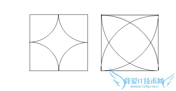 2,以正方形四个顶点为圆心,边长为半径划弧