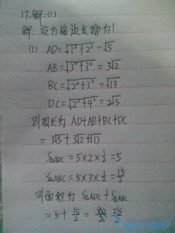 问题1:如图,小方格都是边长为1的正方形.(1)求四边形ABCD的面积和 如图,小方格都是边长为1的正方形.(1)求四边形ABCD的面积和周长;(结果保留根号) (2)角BCD是直角吗?[数学科目]