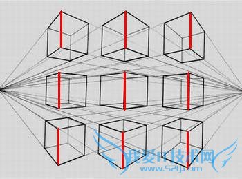 要注意每个面都是正方形,对边是要平形的!但是因为透视关系,可以稍微近大远小!正方体一般不明显,如果是个无限长的长方体,那三条倾斜的边是要会成一个点的!