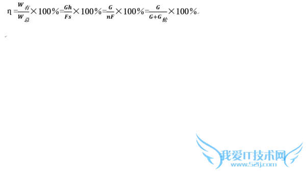 机械效率 η=W有用/W总=Gh/Fs=Gh/Fnh=G/nF=G/(G+G动)