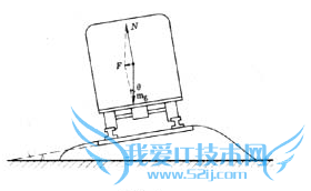 火车转弯时行驶在圆弧形轨道上,有向心加速度.火车需要朝向轨道内侧倾斜,因此铁路的外轨比内轨铺得高一些.这时的重力G=mg是竖直的,但铁轨的支持力N是向内侧倾斜的.这两个力的合力F,其方向沿水平指向圆弧中心(附图1).轨道的倾斜度是根据火车的平均速度v设计的.如果火车在转弯处的速度过大,就会造成脱轨翻车事故.