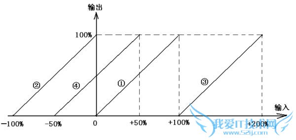 曲线 ① 为变送器的正常输出曲线,即输入 0~100% 时对应 0~100% 输出;