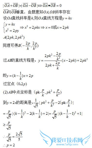 问题5:高二数学------抛物线的几何性质已知A、B是抛物线x2=2py(p>0)上的两个动点,O为坐标原点,非零向量向量OA,向量OB满足绝对值向量OB+向量OB绝对值=绝对值向量OA-向量OB绝对值.(1)求证:直[数学科目]