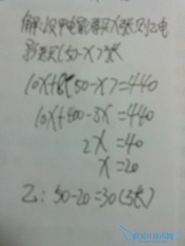 问题3:班里买了50张电影票,甲票每张12元,乙票每张8元,票价共540元.甲乙两种票各买了多少张?(用算术方法解)[数学科目]