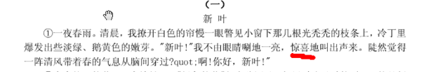 问题5:新叶(节选)的阅读答案,急求……1、有一个词语写出了作者发现新叶时的心情,这个词语是:( )2、在第三自然段的“无穷碧”和“别样红”出自同一首古诗,这首诗[语文科目]