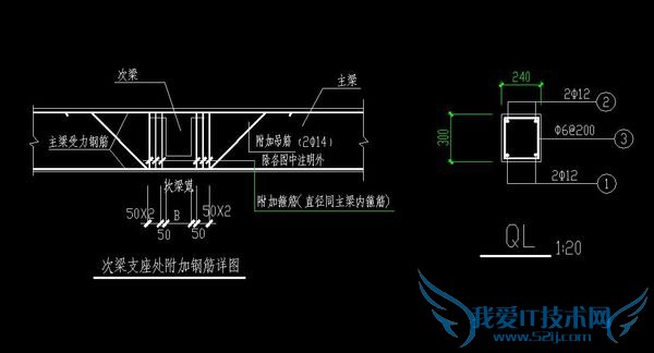 1.次梁搁置出的箍筋加密至3@50,箍筋直径同主梁
