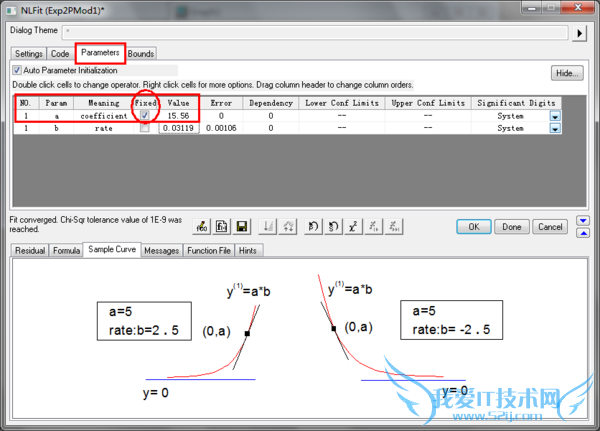 然后点击 Parameters 选项卡,如下图红框所示,将参数 a 固定(Fixed) 为 15.56,点击 Fit